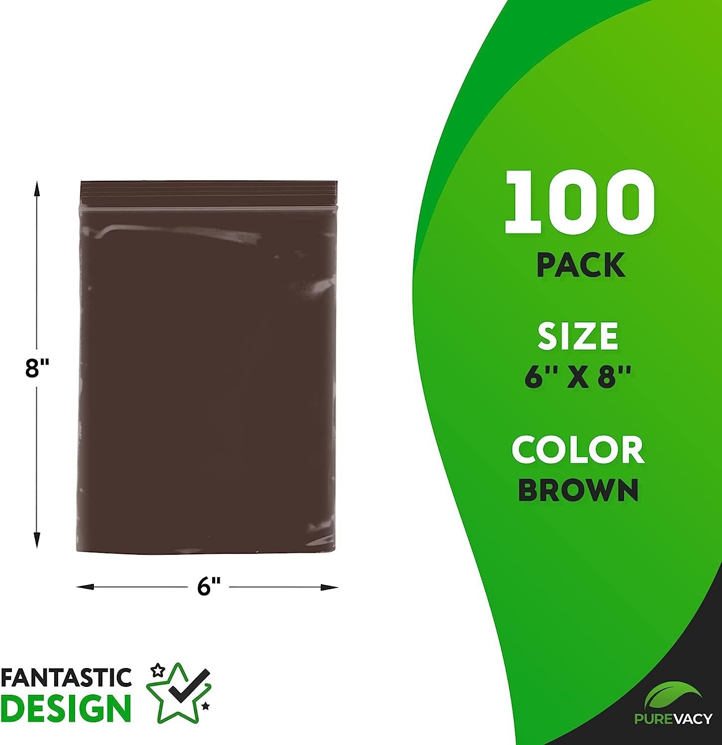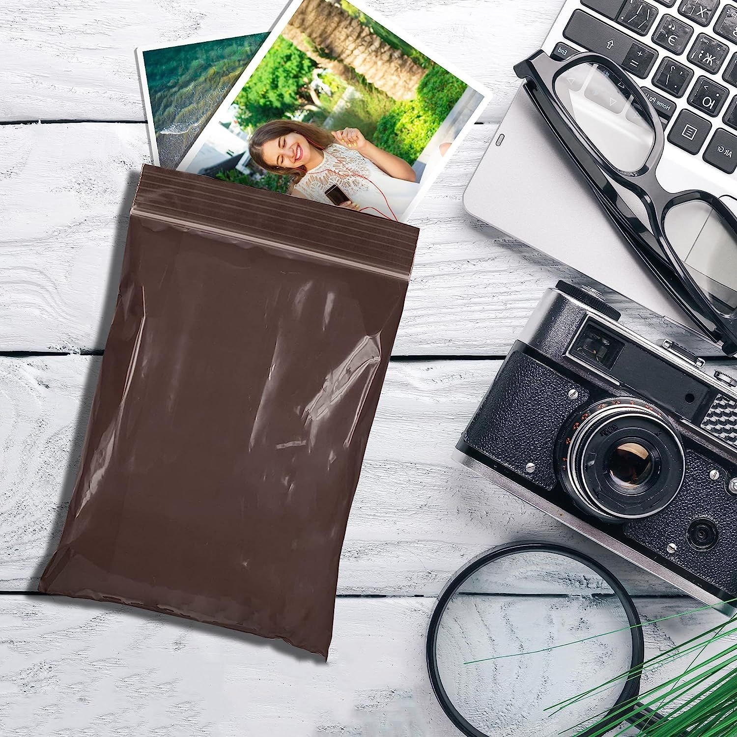 Amber Zip Bags 6 x 8; Brown Poly Zip Bags for Storage 100 Pack; Water-Resistant Plastic Bags Resealable 3 Mil; Durable Poly Zipper Bags; Heavy Duty Po