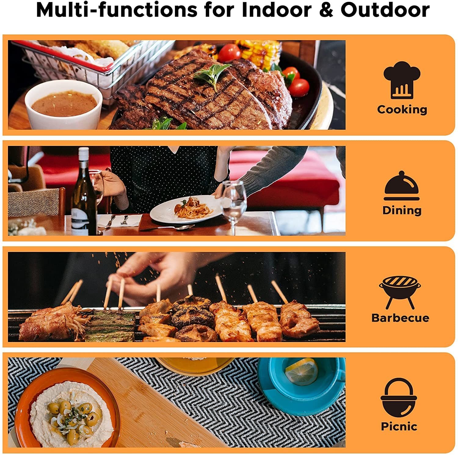 Ideal for cooking in the kitchen or grilling BBQ outside