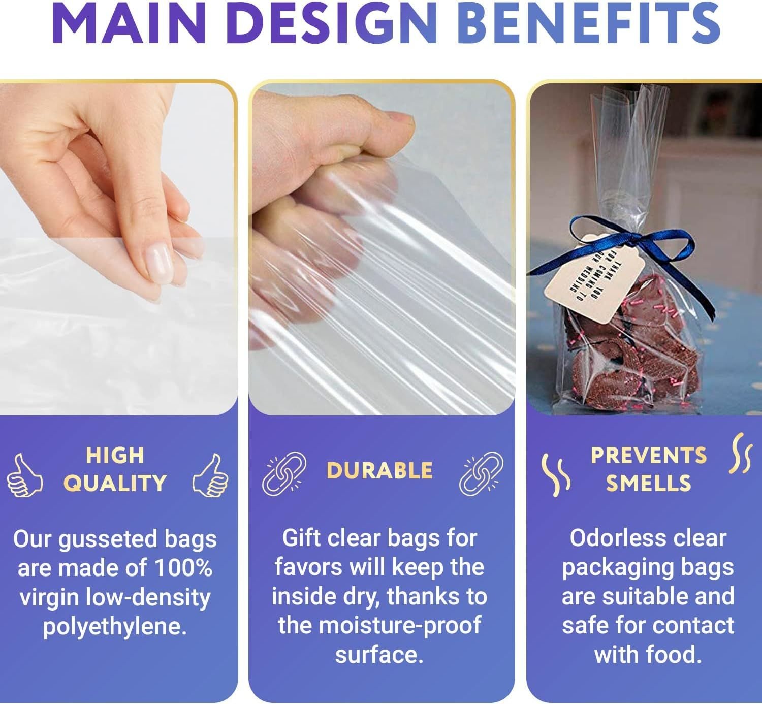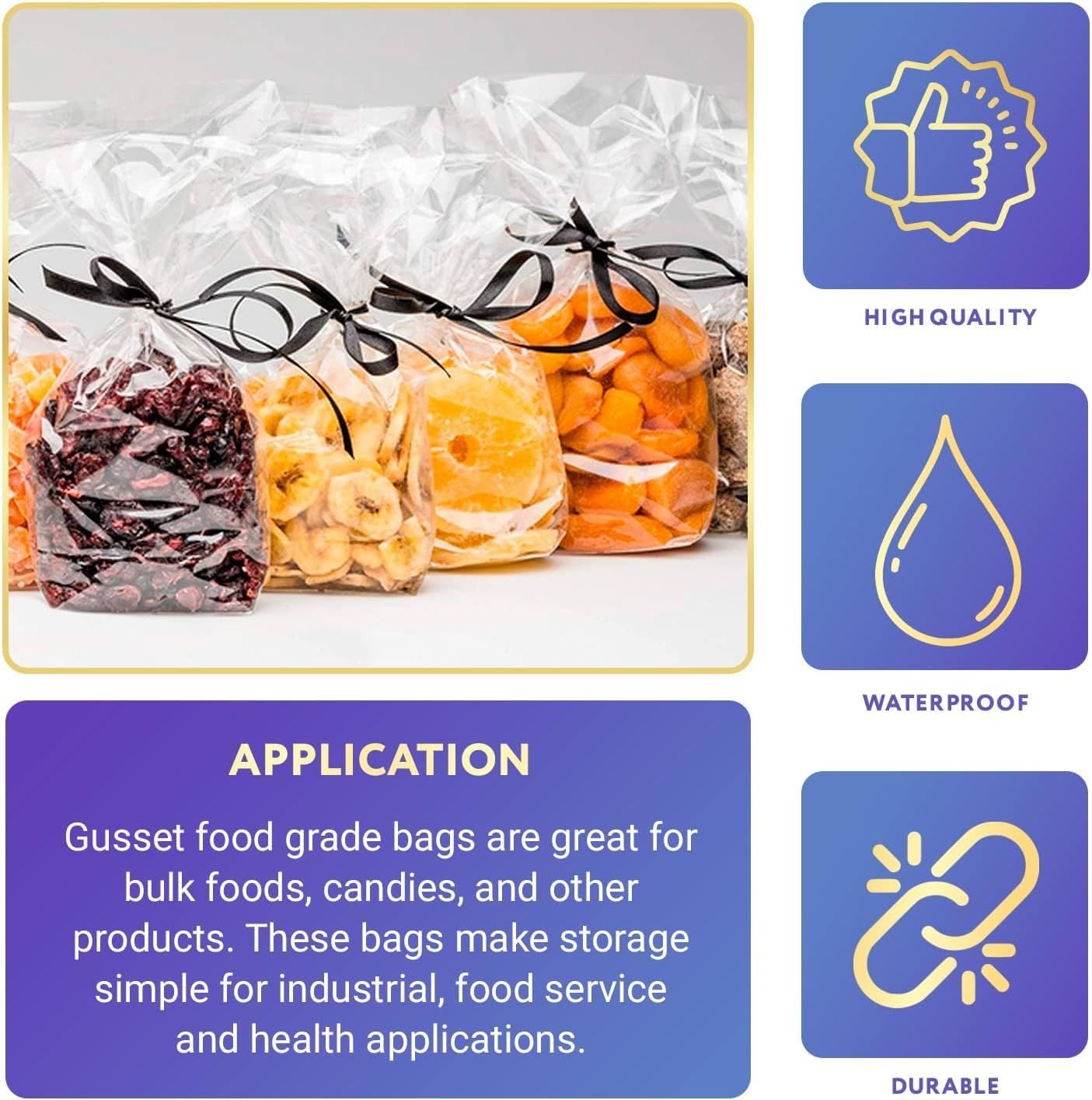 Clear Gusseted Poly Bags 5 x 3.5 x 12; Clear Polyethylene Bags Pack of 100; 1 Mil Expandable Side Gusset Bags 5 x 3 1/2 x 11 1/2 for Food Service Industrial Health Needs; Wholesale Price