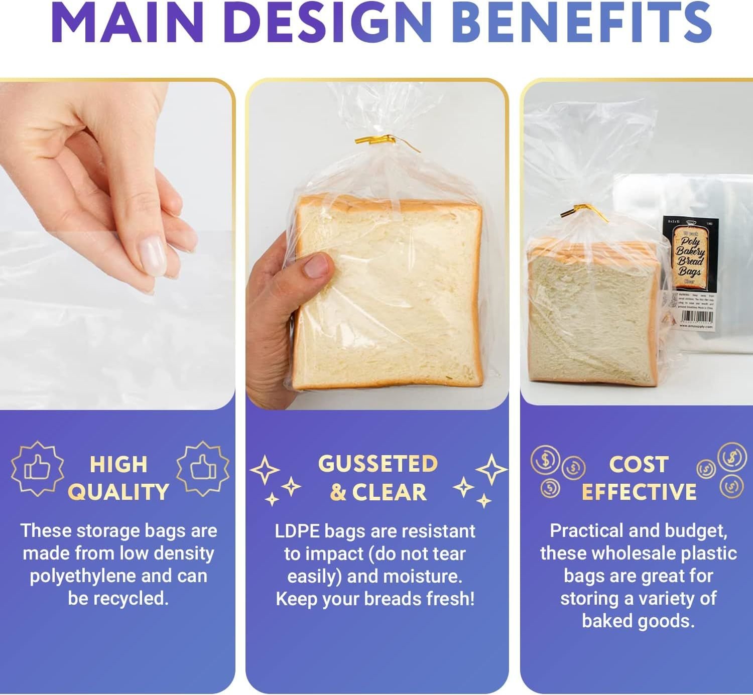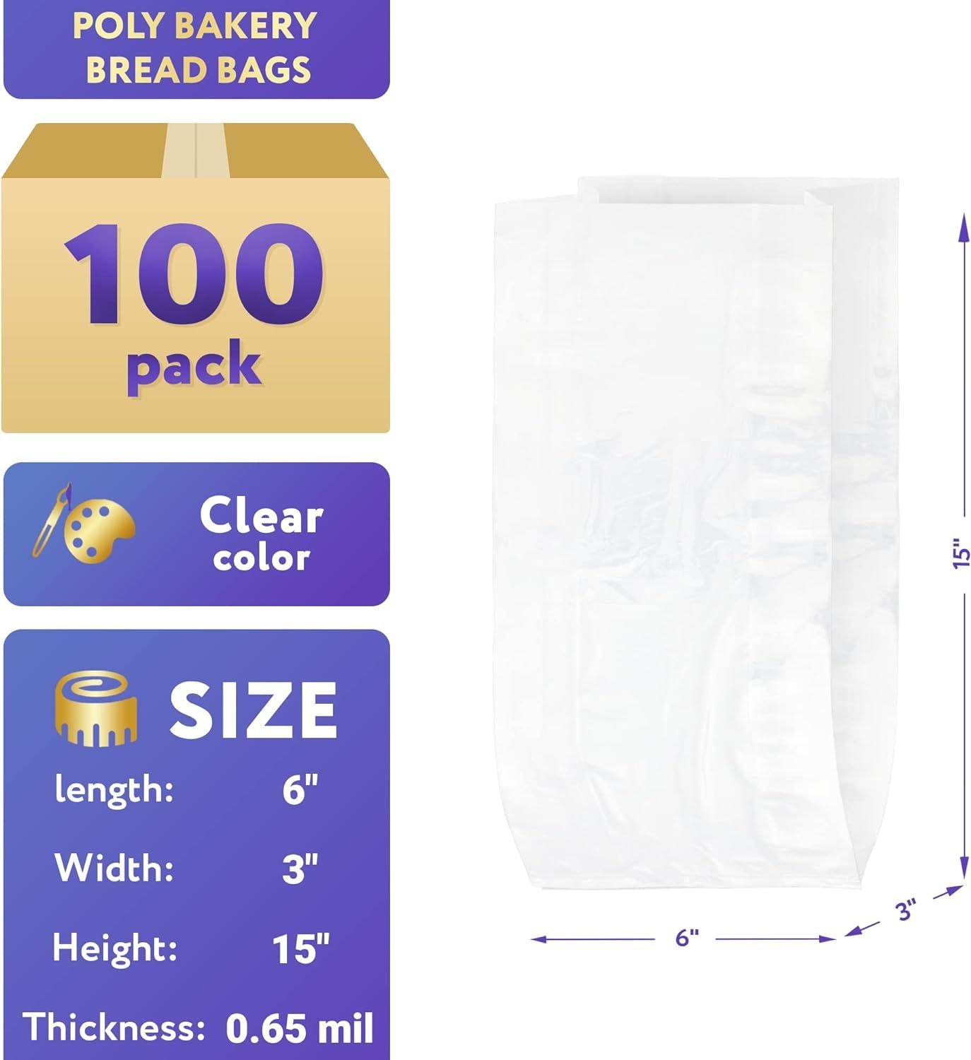 Home > Pack of 100 Poly Bakery Bread Bags 6 x 3 x 15 Clear Gusseted Bags 6 x 3 x 15 Polyethylene Bags Thickness 0.65 Mil Poly Bags for Home Bakeries Food Ind