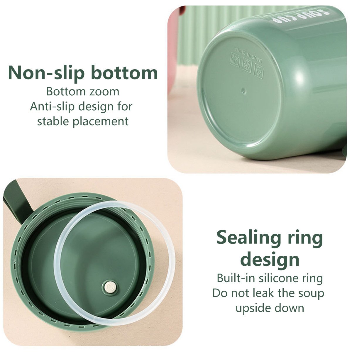 Home > 16.23oz; Food Flasks Stainless Steel Lunch Flask With Foldable Spoon Vacuum Insulated Soup Container Protable Lunch Container With Silicone Rope Food