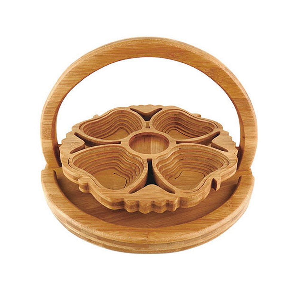 Bamboo Foldable Fruit Storage Basket Creative Collapsible Fruit Candy Plate Nuts Snacks StorageTray Home Decoration Gift Basket