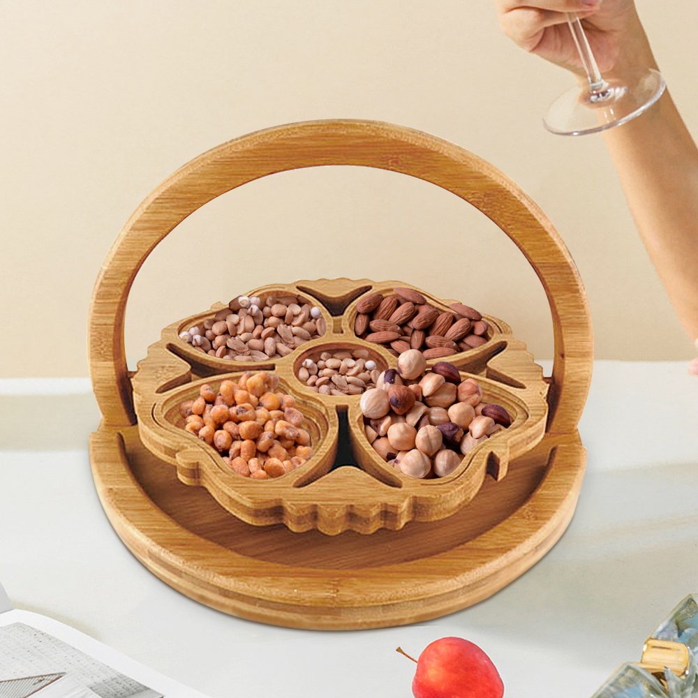 Home > Bamboo Foldable Fruit Storage Basket Creative Collapsible Fruit Candy Plate Nuts Snacks StorageTray Home Decoration Gift Basket
