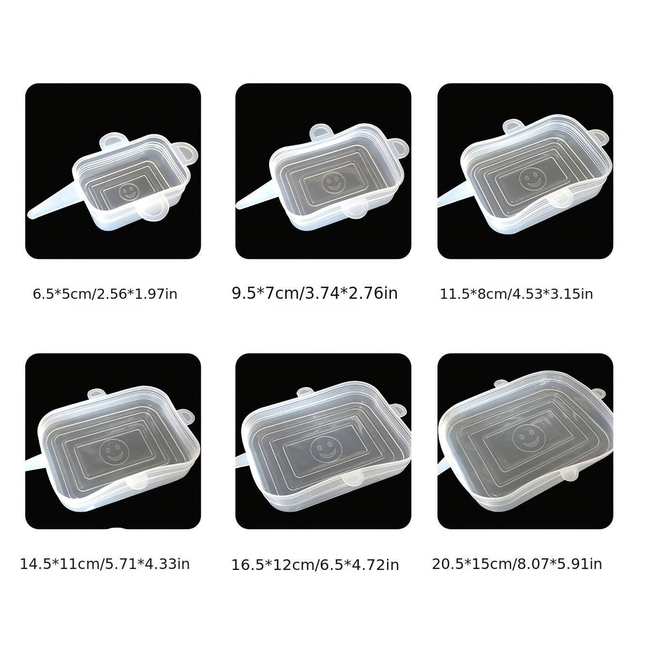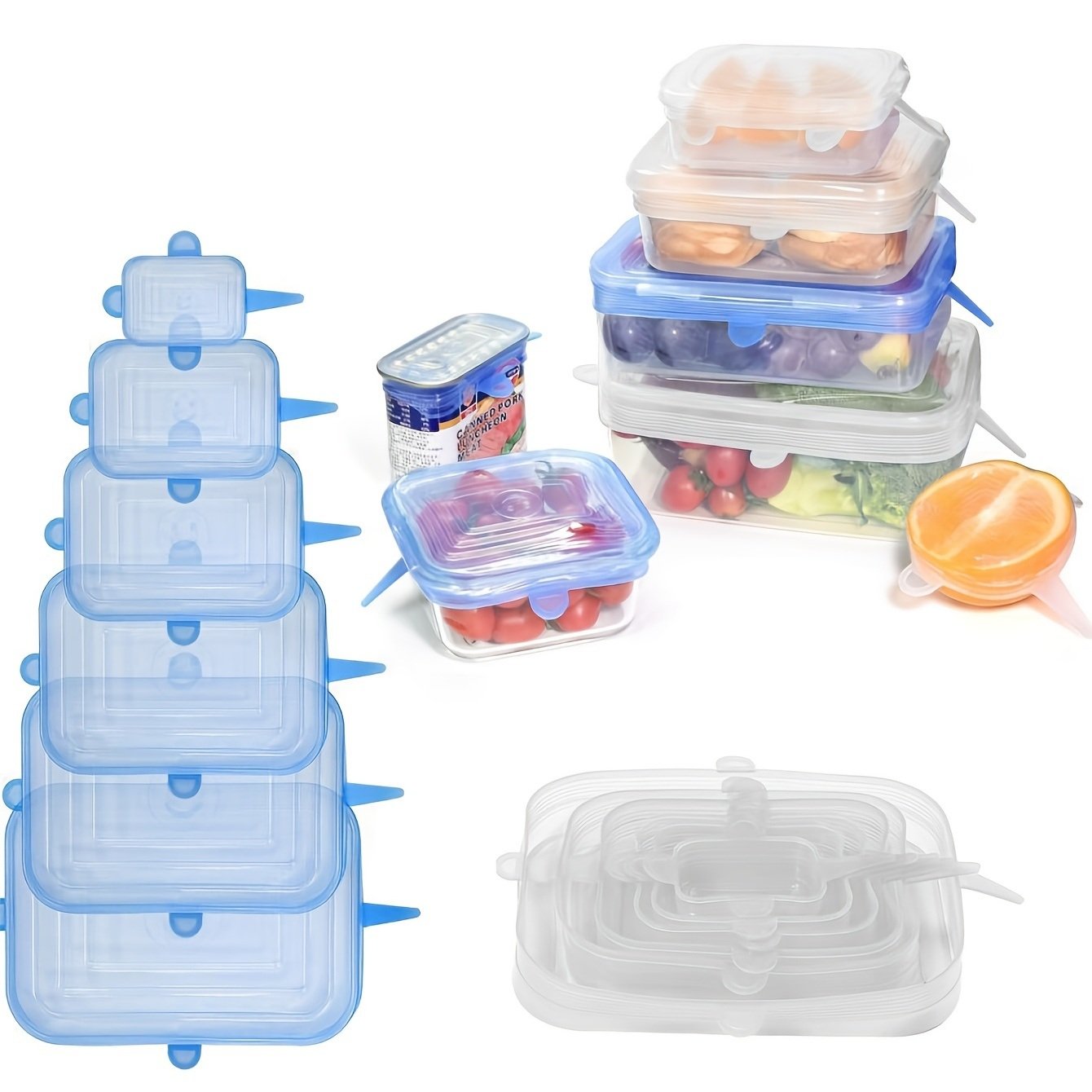 Home > 6pcs Rectangular Silicone Fresh-keeping Lid; Eco-friendly Reusable Food Covers For Bowls; Cups; Cans; Fit Different Sizes & Shapes Of Container; Dishw